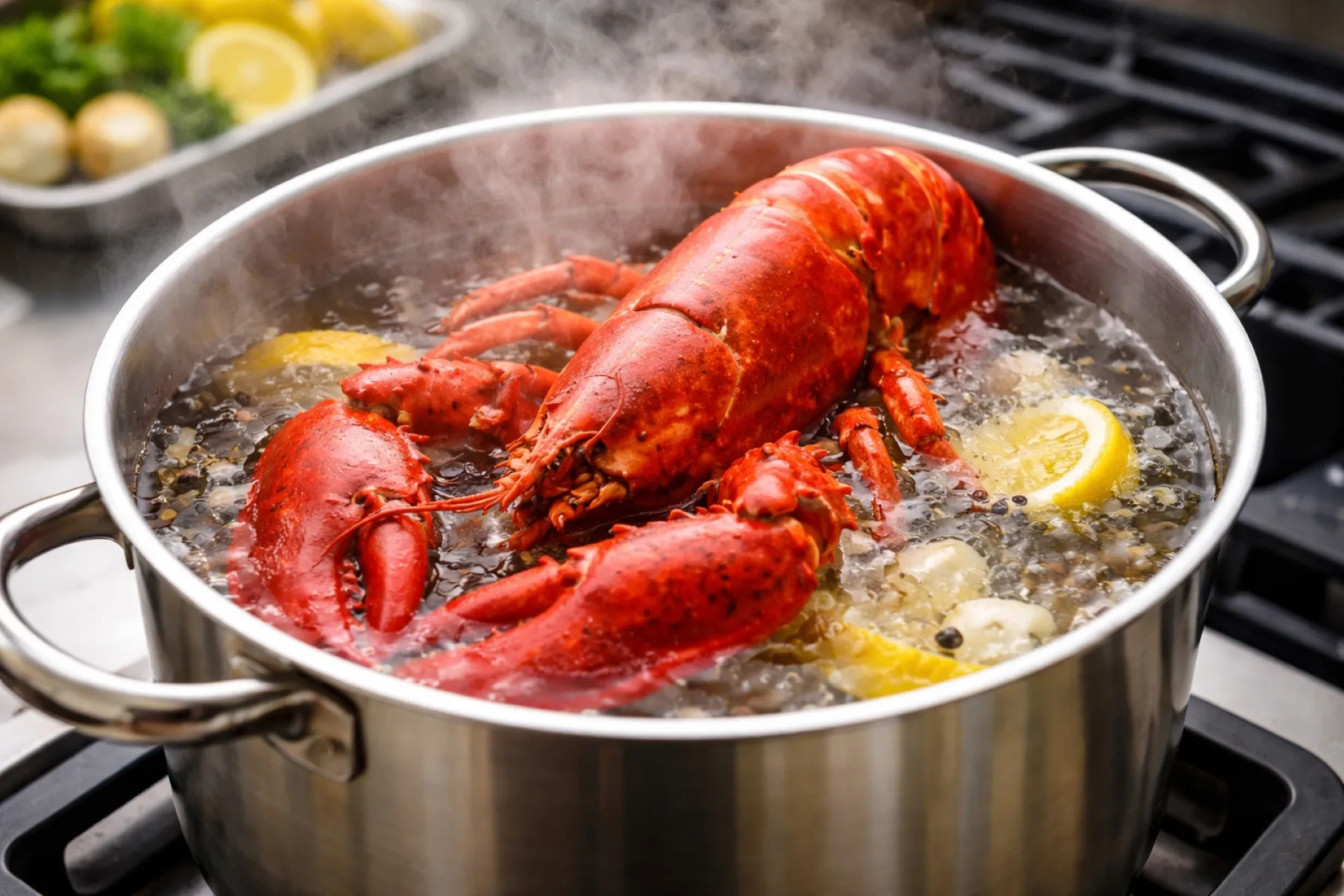 Cocción de langosta y debate sobre dolor marisco